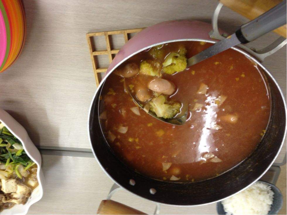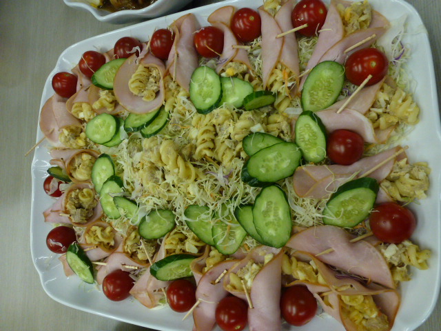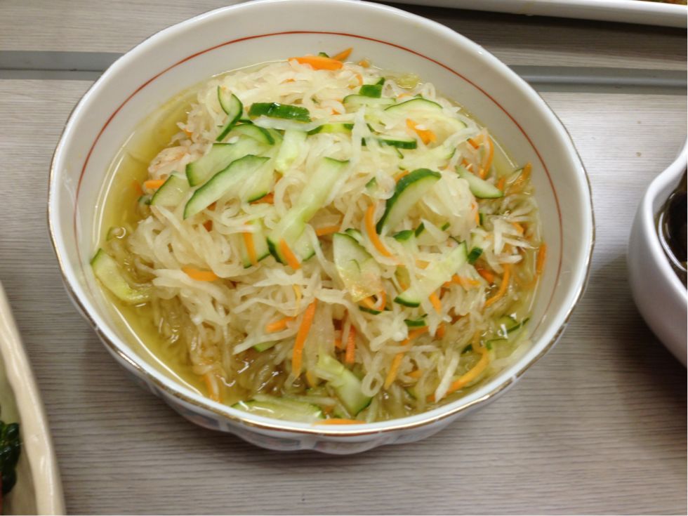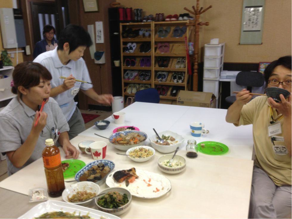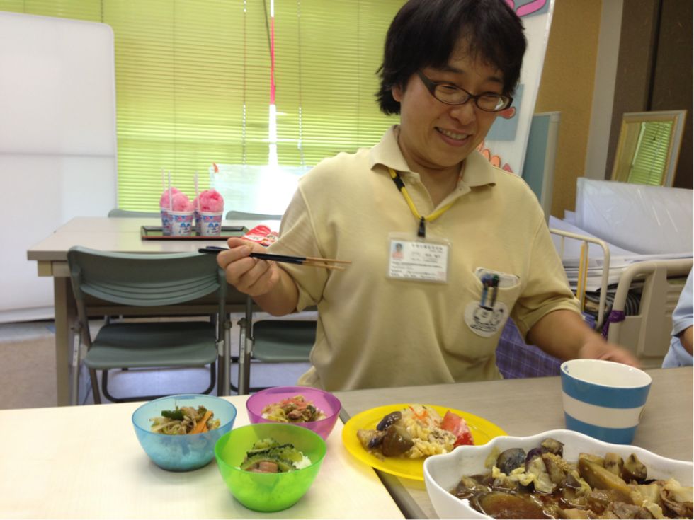 2013/08/09 Category : 普段的な料理 メインは ゴーヤハンバーグ この時期は農園でもゴーヤがいっぱい収穫できます。 利用者さん宅でグリーンカーテンの替わりにゴーヤを育てている方もいますよ♪ 今日のご飯は色合いが悪いよねぇ~ 茶色ばっかり(苦笑) 輪切りにしたゴーヤにハンバーグを詰めて焼きます 苦いのが苦手なスタッフもこれなら食べれる♪ すき焼きもどき(笑) アジの南蛮漬け 糸こんにゃく入りひじき 白和え じゃことピーマンの炒め物 なんだか、真上から撮ったら変な画像(笑) ミネストローネ風スープ♪