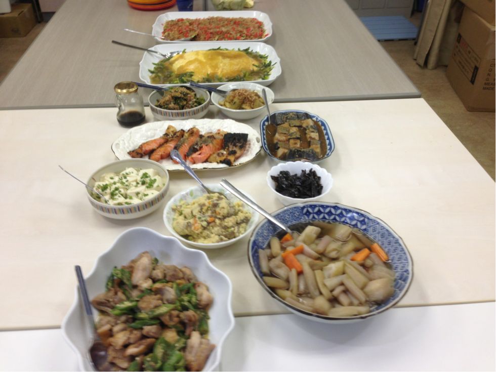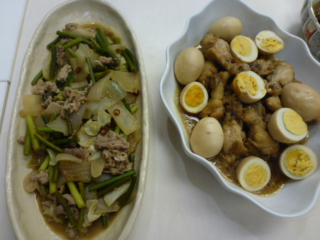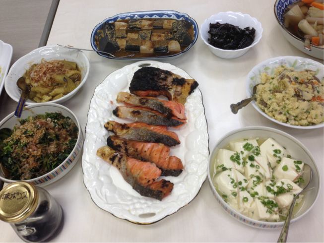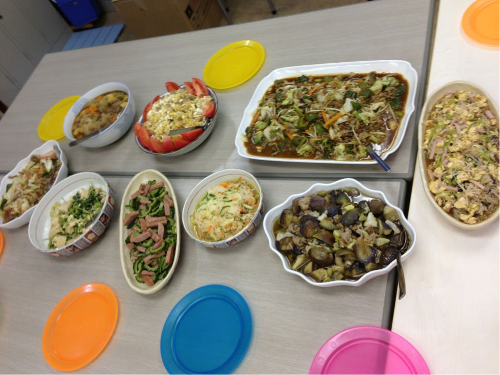 2013/08/12 Category : 普段的な料理 今日のメインは・・・決められない(苦笑) 今日は農園から野菜がいっぱい収穫されてきたので 野菜たっぷりメニューです♪ なすびと豚肉とキャベツのポン酢風味♪ 大根とにんじんのなます♪ キャベツと舞茸の味噌ミンチ炒め♪ もやしとハムと卵の三杯酢しょうゆ味♪ マグロの角煮とマカロニのサラダ(シーチキンの甘辛風味) ゴーヤとスパムの炒め物♪ 高野豆腐と三つ葉の卵とじ♪ 肉じゃが♪ 野菜炒めのしょうがマヨネーズ味♪ 一番乗りは何でも食べたい放題です(笑) 何を食べるか迷っちゃいます♪ 何を食べるか迷ったらバーベル姉さんを見習って!! まず、ご飯を3杯用意します その上に好きなおかずを盛り付けます 残りのおかずはプレートに取り分けて~~~ 本日熱中症で午前中に5人も亡くなられているとニュースで言ってる 高齢者を救うためのヘルパーさんです どんどん食べて体力をつけてくださいね~~~♪